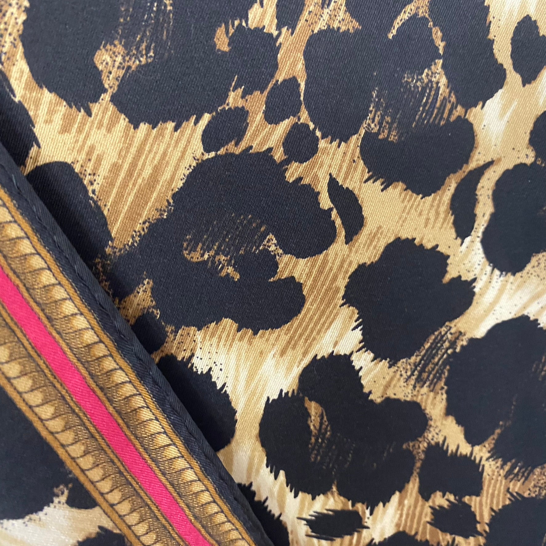 This Adrienne Landau silk scarf features classy animal print design in brown, black and red.