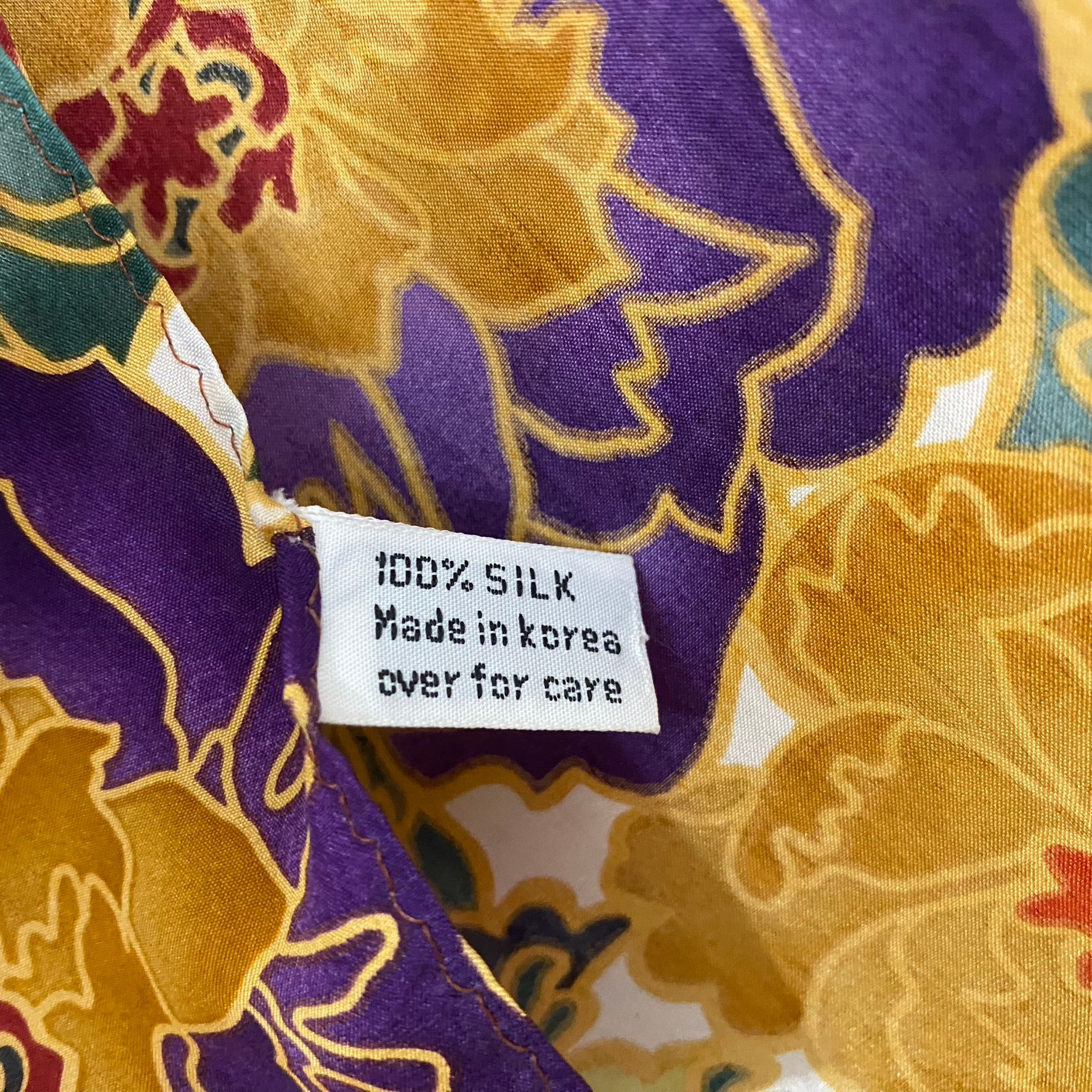 10" x 54" long, 100% Silk, Tag is attached, Flat machine stitched, Made in Korea, Excellent condition.