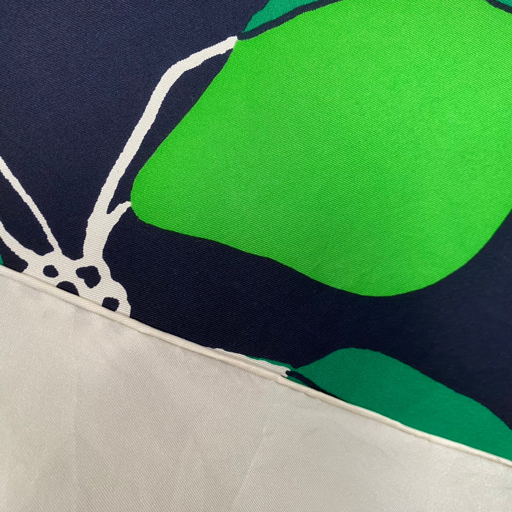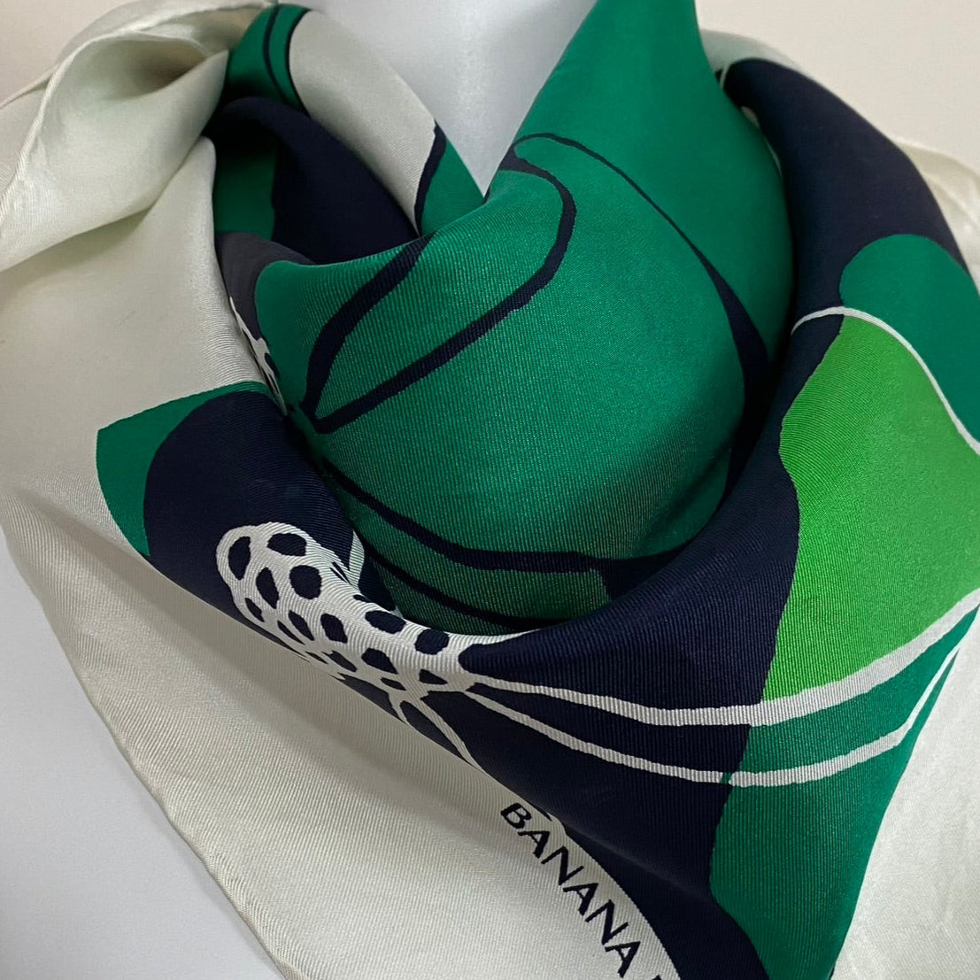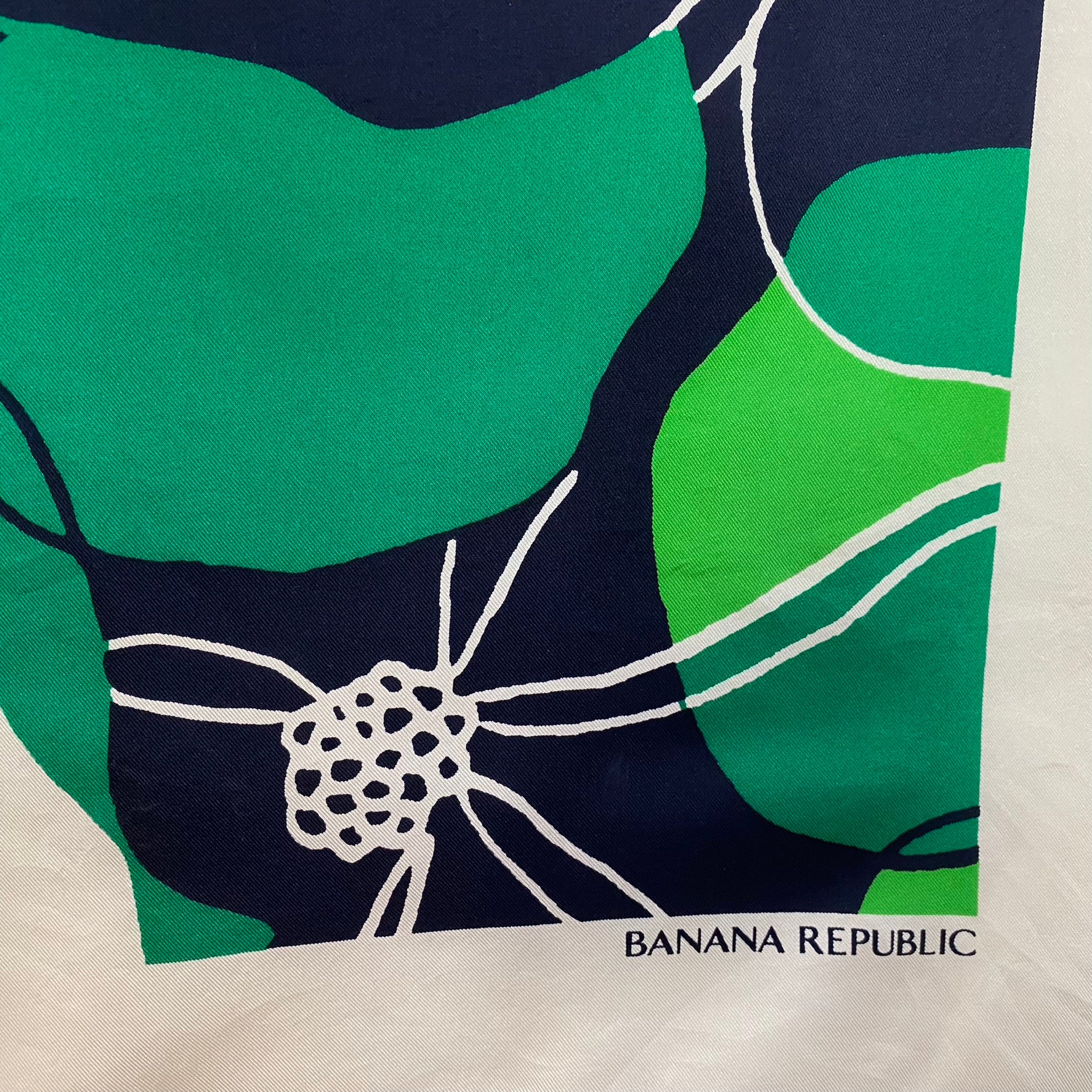 This Banana Republic silk scarf features floral design in ivory, green and navy blue.
