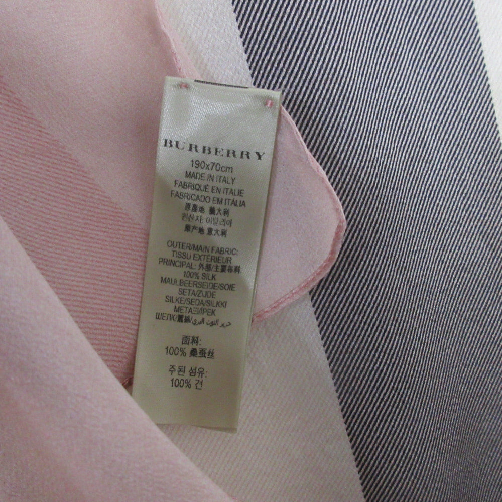 This Burberry silk scarf is lightweight with geometric design in pink, black, ivory, burgundy.