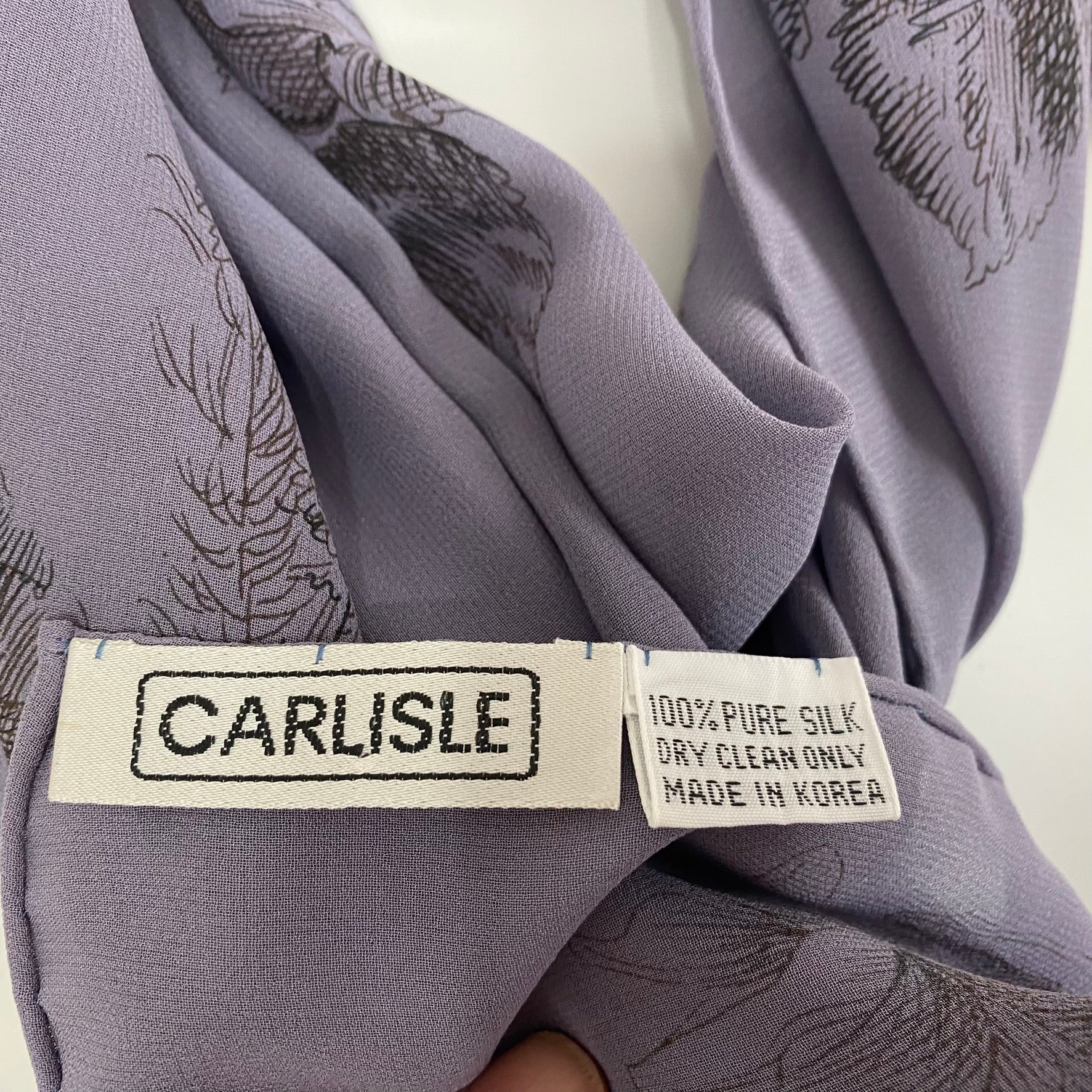 This Carlisle silk scarf has a floral pattern in mauve, black and is lightweight sheer