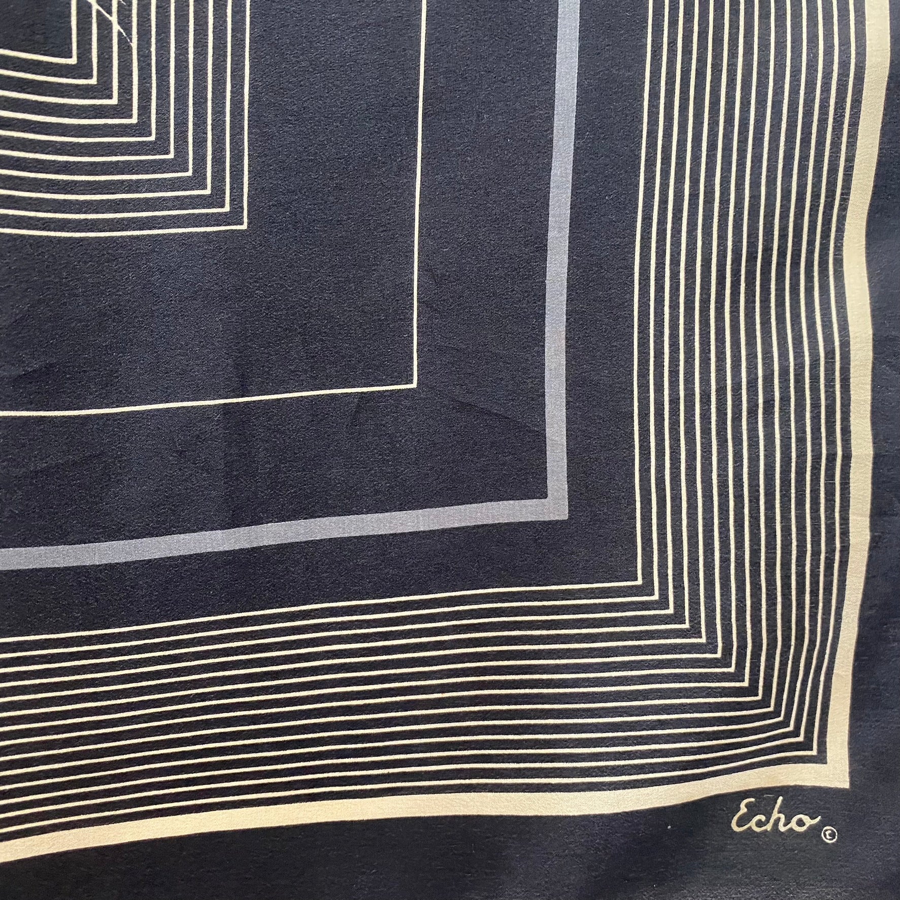 31" Square, 100% Silk, Tag has been removed, Hand rolled and hand stitched, Excellent condition.
