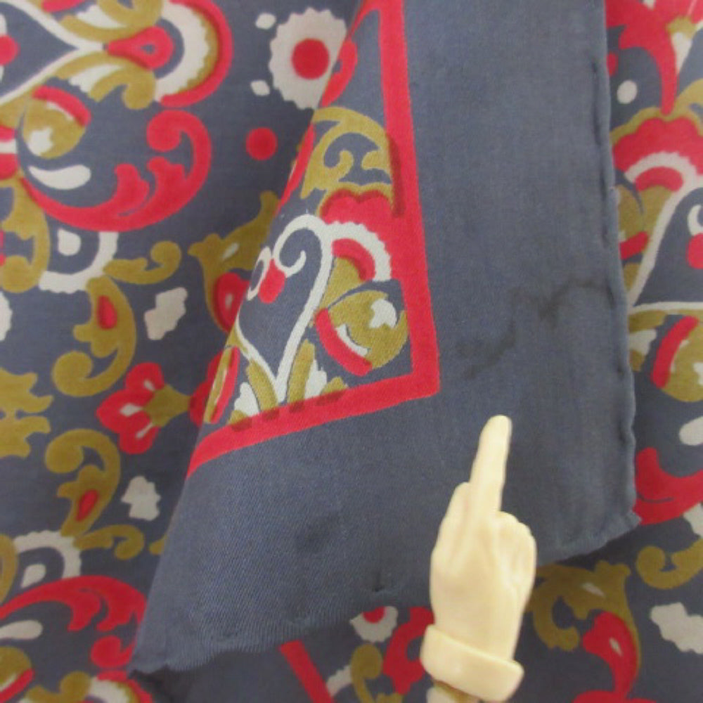 26" Square, 100% Silk, Tag is attached, Made in Italy, Hem is plump hand rolled hand stitched, Minor marks in one corner.