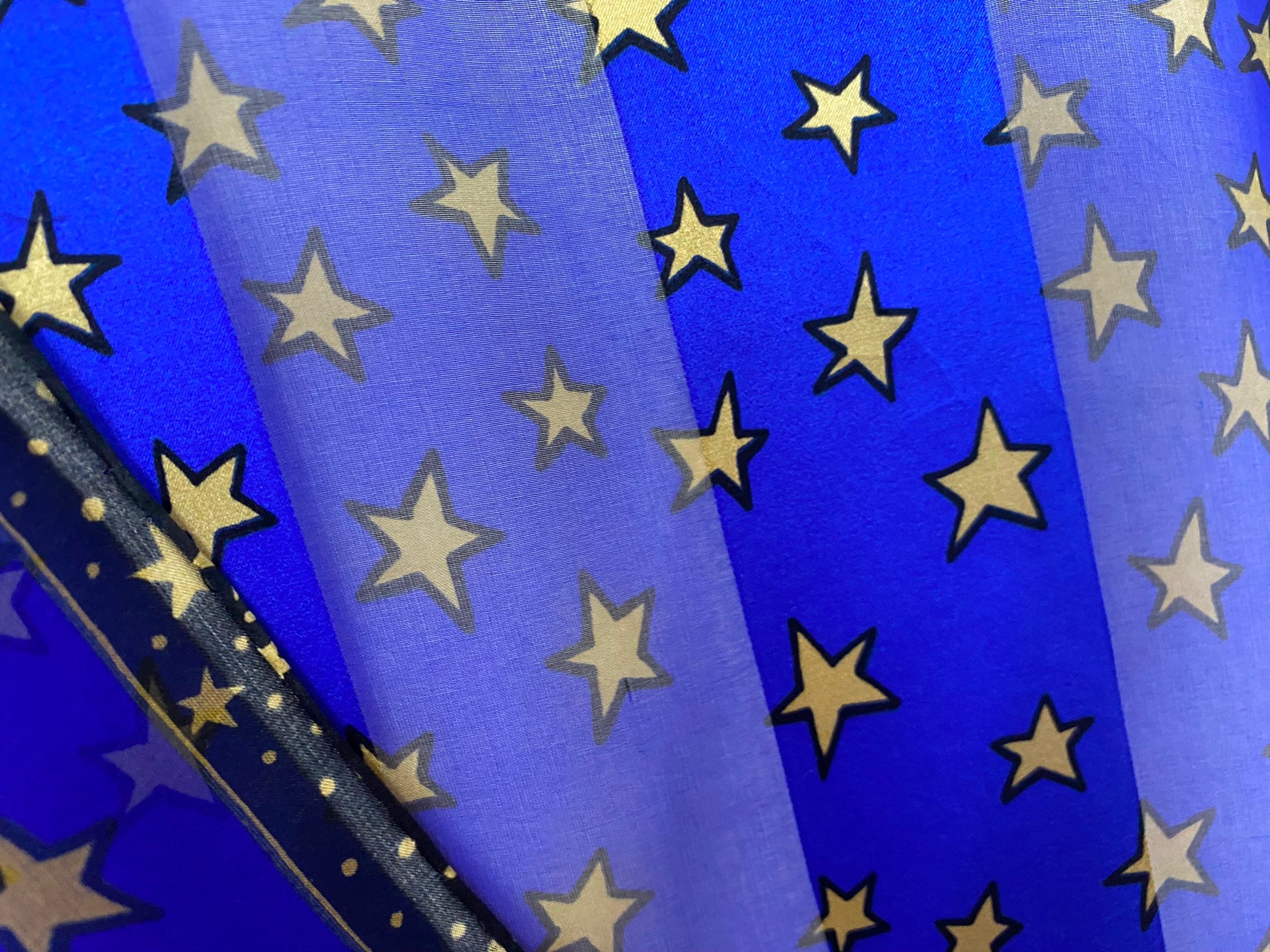 This Laurel Burch silk scarf is semi sheer with alternating stripes and features cats design with floral art in blue, cream, fuchsia and brown.